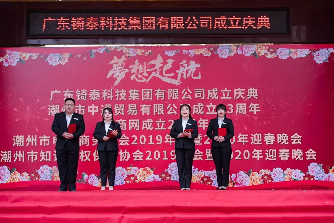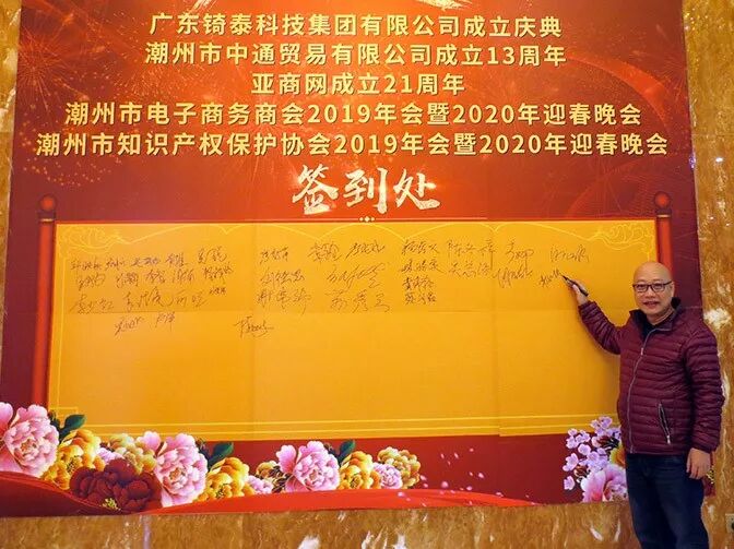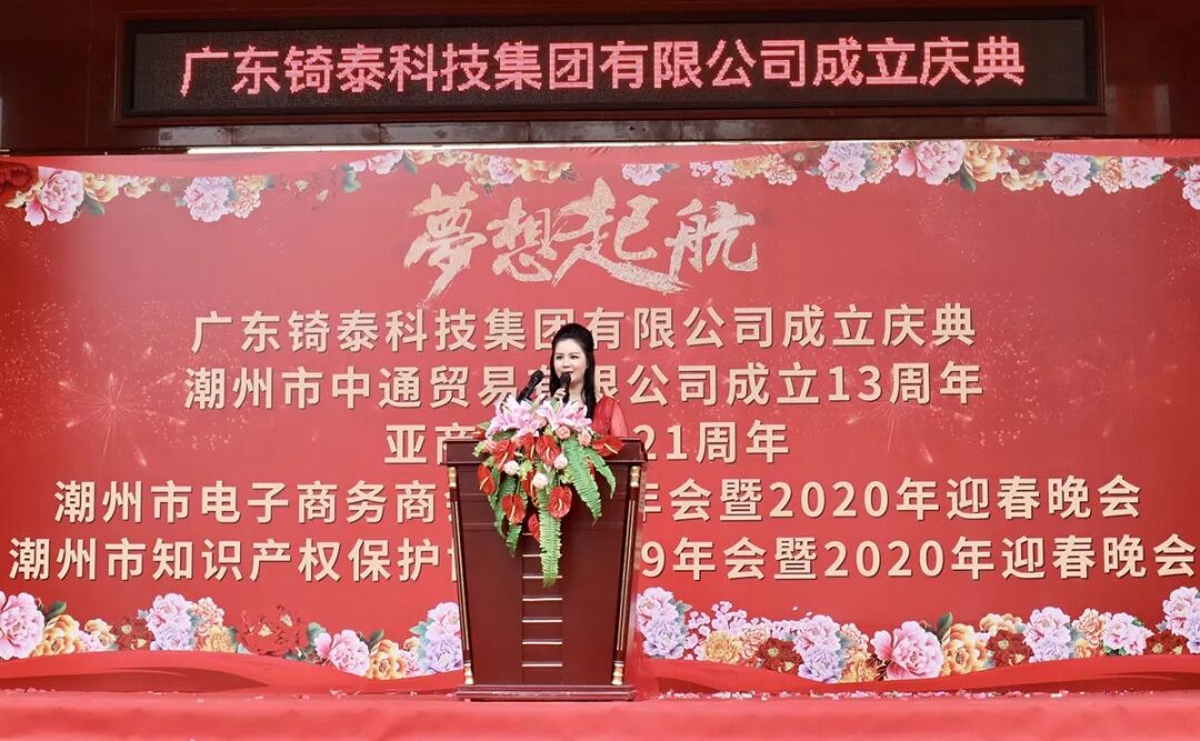 2020年元日,在这辞旧迎新的日子里,我们欢聚一堂,共同庆祝广东锜泰科技集团有限公司成立,庆祝潮州市中通贸易有限公司成立13周年,庆祝亚商网成立21周年。同时,今天也是潮州市电子商务商会和潮州市知识产权保护协会2020年迎春年会。
